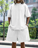 SPECIFICATIES Stijl: Gewoontjes Toptype: t-shirt Categorie: Sets Materiaal: katoenblends Patroon type: Effen kleur Hals lijn: Ronde nek Mouw type: Normale mouw Mouw lengte: Korte mouw Broektype: Gebruikelijke Broek lengte: Kort type taille: Middelhoge taille Pasvorm: Normaal Seizoen: Lente,Zomer Details: Zak,Veterschoenen Gelegenheid: Dagelijk...