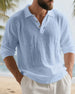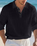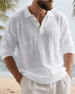 Overhemd Heren Lichtgewicht Los Linnen Lange Mouw Polo