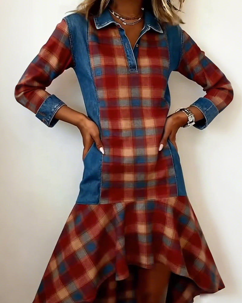 Modieuze Langmouwige Blouses Met Ruitjespatroon