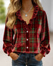 Hoodie Met Kraag Ontwerp, Ruitpatroon, Patchworkdetail En Fluwelen Stof