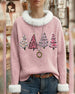 Trui Met Pluche Textuur, Ronde Kraag Ontwerp En Kerstboompatroon