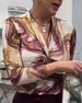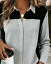 Shirt Elegant Sequin-Satijn Patchwork Met Kraag