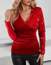 Top Met Sexy Stijl, V-Kraag Ontwerp, Kantstof En Lange Mouwen
