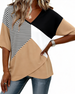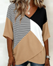 Top Gestreept Kleurenblok V-Hals Korte Mouw