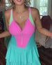 Jurk Bel Mouw Kleurenblok V-Hals