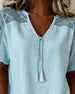 Top Versleten Denim Korte Mouw