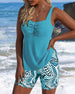 Tankini Tanktop Stijl Blad Print Shorts