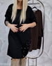 Jurk Met Hoge Kraag Ontwerp, Knop Detail En Gescleten Onderkant