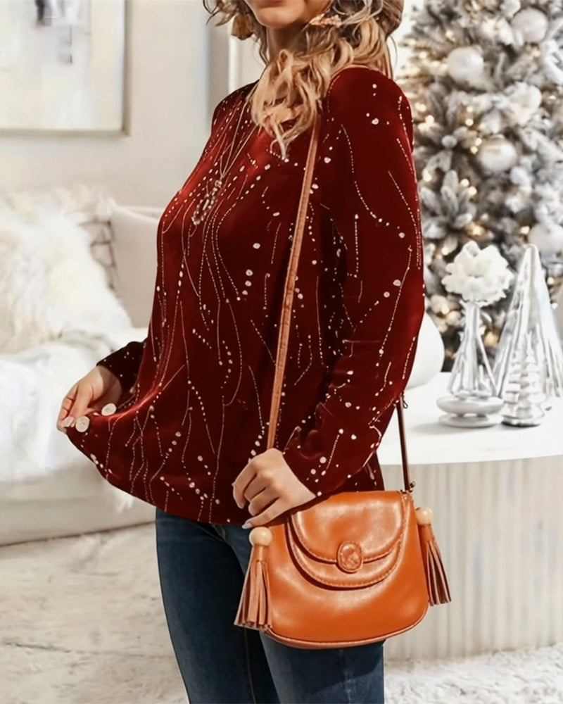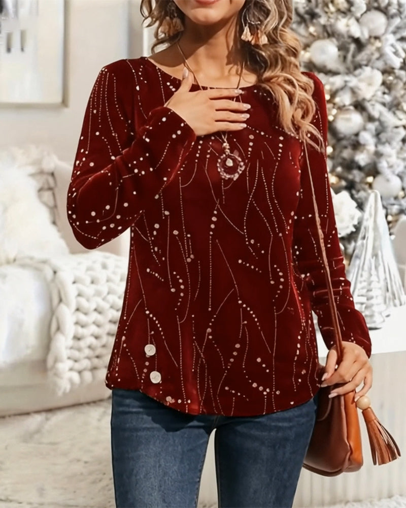 Gedrukte Casual Top Met V-Hals En Lange Mouwen