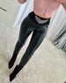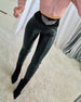 Vrolijke kerst legging met glanzende wijnglasprint voor dames