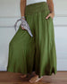 Effen kleur, comfortabele broek met wijde pijpen en zakken