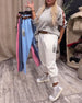 Modieuze effen broek met zakken en onregelmatige patchwork