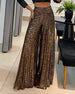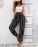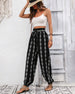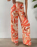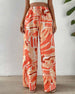 Elastische broek met wijde pijpen en trekkoord met geometrische print