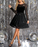 Fluwelen Pailletten Jurk Met Wijde Halslijn
