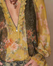 Elegante A-lijnjurk met bladprint en diepe V-pofmouwen