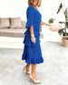 SPECIFICATIES Stijl: Elegant Materiaal: katoenblends Type jurk: A-lijn Jurk lengte: Midi Hals lijn: Ronde nek Patroon type: Effen kleur Mouw type: Mouwen met split Mouw lengte: Halve mouw Details: Ruche Pasvorm: Normaal Seizoen: Lente,Val Gelegenheid: Dagelijks Pakket bestaat uit: 1 x Jurk MAATTABEL (cm) Maat Borst Lengte S 97 106 M 1...