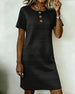 SPECIFICATIES Stijl: Chique Materiaal: katoenblends Type jurk: Verschuivings jurk Jurk lengte: Boven de knie Hals lijn: Ronde nek Patroon type: Effen kleur Mouw type: Normale mouw Mouw lengte: Korte mouw Details: Toetsen Pasvorm: Normaal Seizoen: Lente,Zomer Gelegenheid: Dagelijks Pakket bestaat uit: 1 x Jurk MAATTABEL (cm) Maat Borst Le...