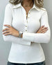 SPECIFICATIES Toptype: Bloes Stijl: Gewoontjes Materiaal: Katoen en linnen Gelegenheid: Dagelijks Hals lijn: Revers Patroon type: Effen kleur Mouw type: Normale mouw Mouw lengte: Lange mouw Pasvorm: Normaal Seizoen: Lente,Val Details: Toetsen Pakket bestaat uit: 1 x bloes MAATTABEL (cm) Maat Borst Lengte S 97 65 M 101 66.5 L 105 68 X...