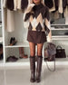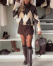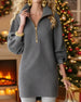 Effen Kleur Langmouwige Trui-Jurk Met Patchwork