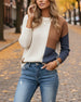 Wijdvallende Trui In Patchwork En Effen Kleur