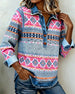 Sweater Kraag Knoop Gedrukt Lange Mouw