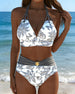 Bikini Metalen Gesp Hoge Taille Gesplitst Geprint
