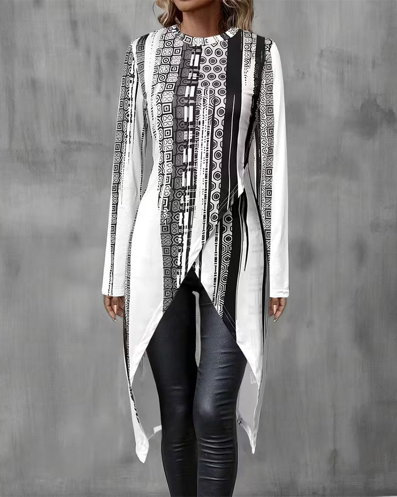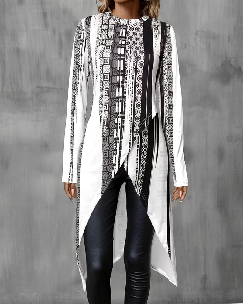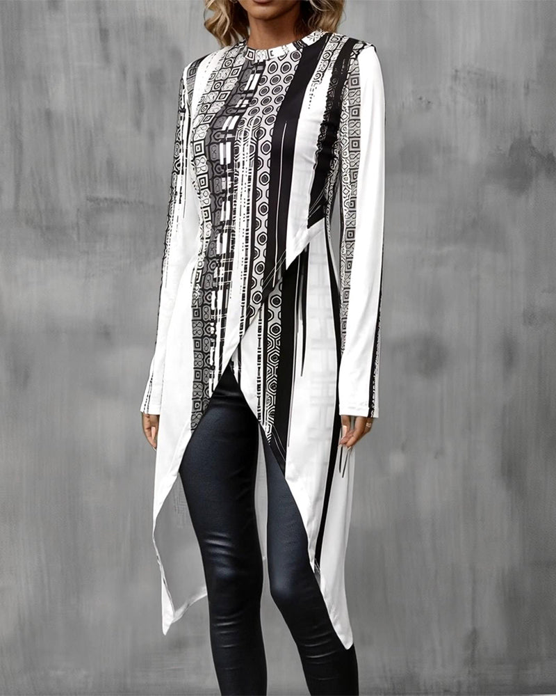 T-shirt casual bedrukt lange mouw ronde hals
