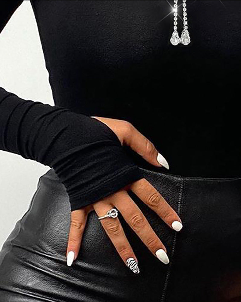 T-Shirt Effen Kleur Holle Ronde Hals Slank