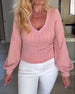 Top Gerimpelde V-Hals Lange Mouwen Fluweel