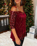 Top Met Pailletten Off-Shoulder Lange Mouw