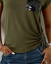 SPECIFICATIES Toptype: t-shirt Stijl: Gewoontjes Materiaal: katoenblends Gelegenheid: Dagelijks Hals lijn: V-hals_V Patroon type: Effen kleur Mouw type: Normale mouw Mouw lengte: Korte mouw Pasvorm: Normaal Seizoen: Lente,Zomer Details: Lapwerk,Uithollen,Veter Pakket bestaat uit: 1 x T-shirt MAATTABEL (cm) Maat Borst Lengte S 97 65 M 101...