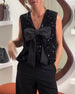 SPECIFICATIES Toptype: Tank top Stijl: Chique Materiaal: katoenblends Gelegenheid: Dagelijks Hals lijn: Ronde nek Patroon type: pailletten,Effen kleur Mouw lengte: Mouwloos Pasvorm: Normaal Seizoen: Val,Winter Details: strik Pakket bestaat uit: 1 x tanktop MAATTABEL (cm) Maat Borst Lengte S 97 65 M 101 66.5 L 105 68 XL 111 69.5 2XL...