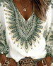 SPECIFICATIES Toptype: Topjes Stijl: Gewoontjes Materiaal: katoenblends Gelegenheid: Dagelijks Hals lijn: V-hals_V Patroon type: Afdrukken Mouw type: Lantaarn mouw Mouw lengte: Lange mouw Pasvorm: Normaal Seizoen: Lente,Zomer Pakket bestaat uit: 1 x Top MAATTABEL (cm) Maat Borst Lengte S 97 65 M 101 66.5 L 105 68 XL 111 69.5 2XL 11...