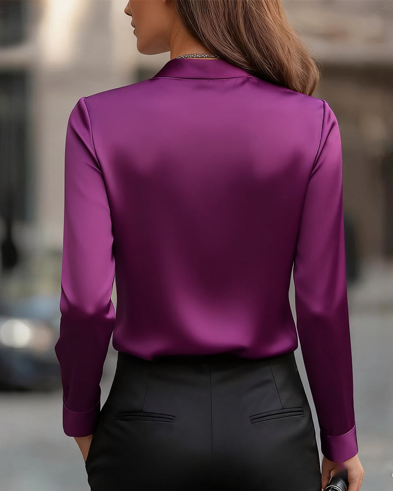 Effen Eenvoudige V-Hals Blouse Met Elegante Uitstraling