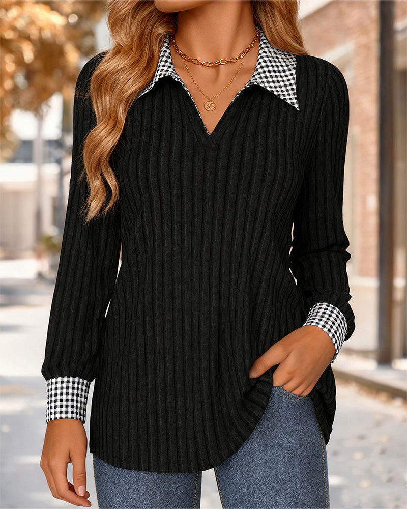 Bovenste Hoefijzer Mouw V-Hals Contrastkleur