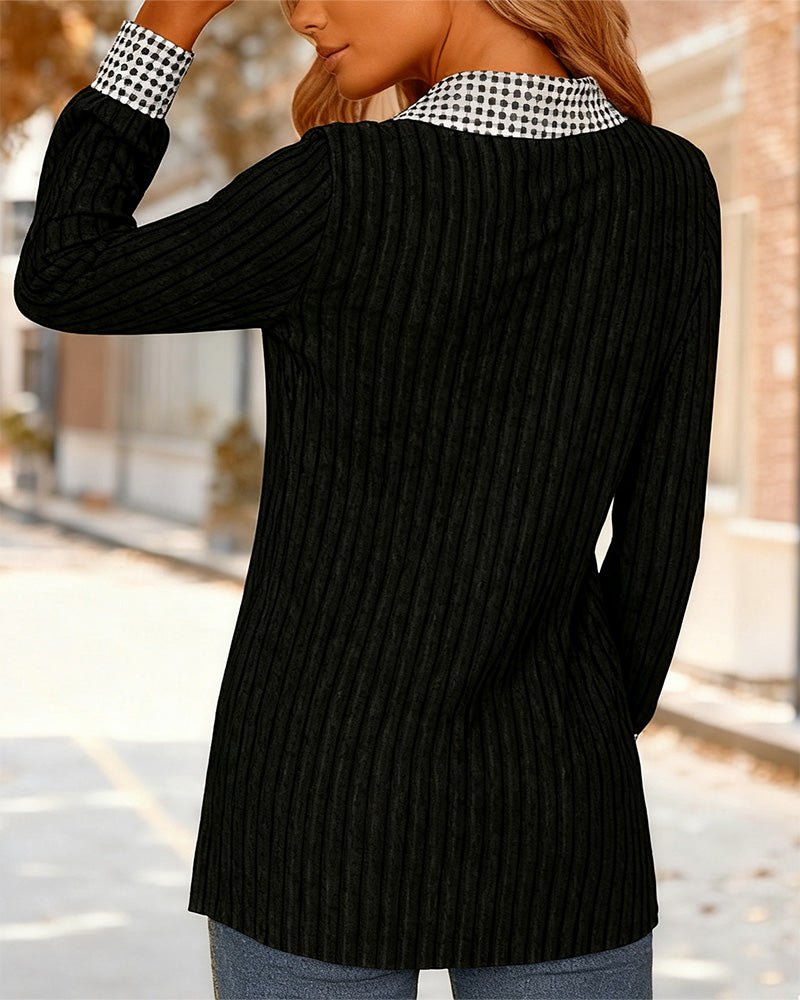 Bedrukt Topje Met Lange Mouwen Nep-Tweedelig Ontwerp