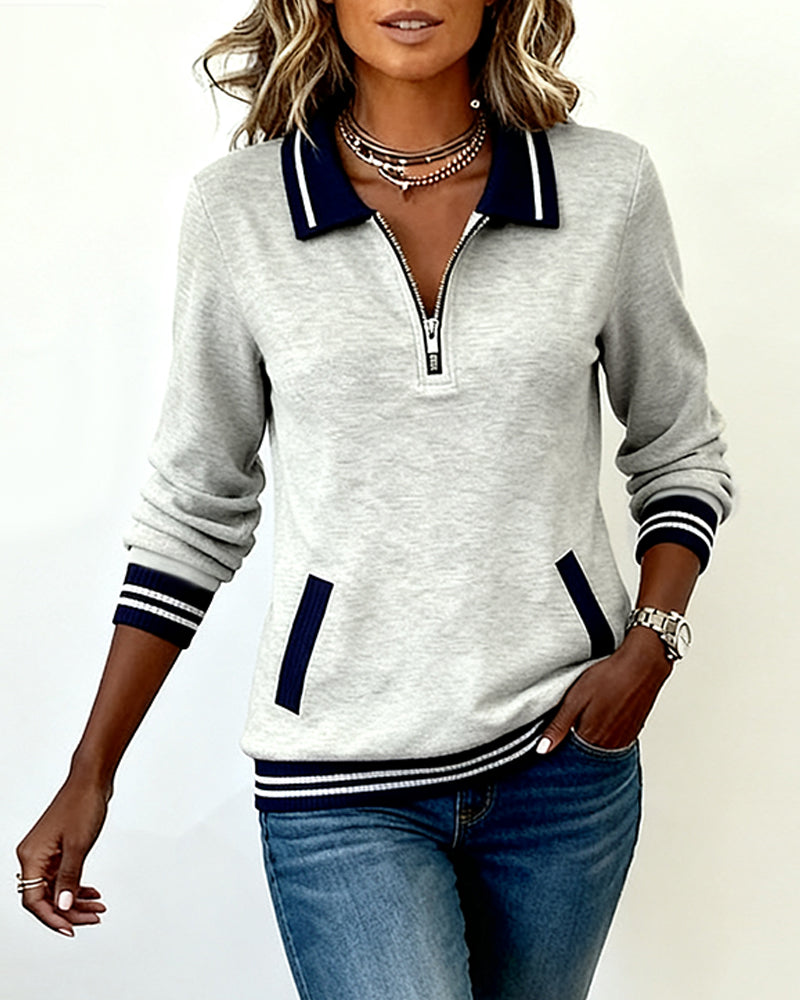 Bovenste Hoefijzer Mouw V-Hals Contrastkleur