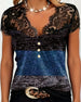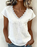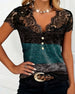 T-Shirt V-Hals Kant Patchwork Contrastkleur
