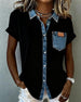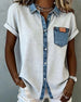 T-Shirt Denim Patchwork Omslagkraag