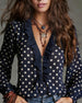 Blouse Halve Rits Ruche Gestippeld