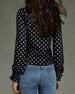 SPECIFICATIES Toptype: Bloes Stijl: Gewoontjes Materiaal: katoenblends Gelegenheid: Dagelijks Hals lijn: V-hals_V Patroon type: Stip Mouw type: Lantaarn mouw Mouw lengte: Lange mouw Pasvorm: Normaal Seizoen: Lente,Zomer Details: Ruche,Rits Pakket bestaat uit: 1 x bloes MAATTABEL (cm) Maat Borst Lengte S 97 65 M 101 66.5 L 105 68 XL 1...