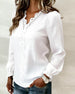 Blouse U-hals Loose Geborduurd Lange Mouw