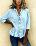 SPECIFICATIES Toptype: Bloes Stijl: Gewoontjes Materiaal: katoenblends Gelegenheid: Dagelijks Hals lijn: V-hals_V Patroon type: Effen kleur Mouw type: Normale mouw Mouw lengte: Lange mouw Pasvorm: Normaal Seizoen: Lente,Val Details: Ruche Pakket bestaat uit: 1 x bloes MAATTABEL (cm) Maat Borst Lengte S 97 65 M 101 66.5 L 105 68 XL 11...