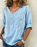 Top V-hals Katoen En Linnen Knoopsluiting