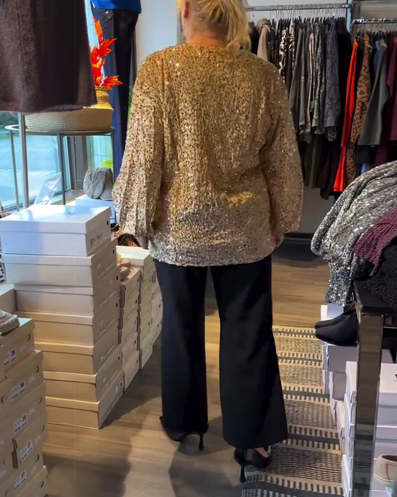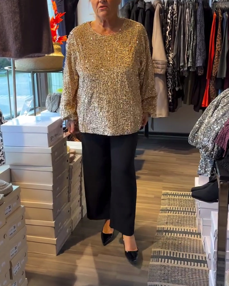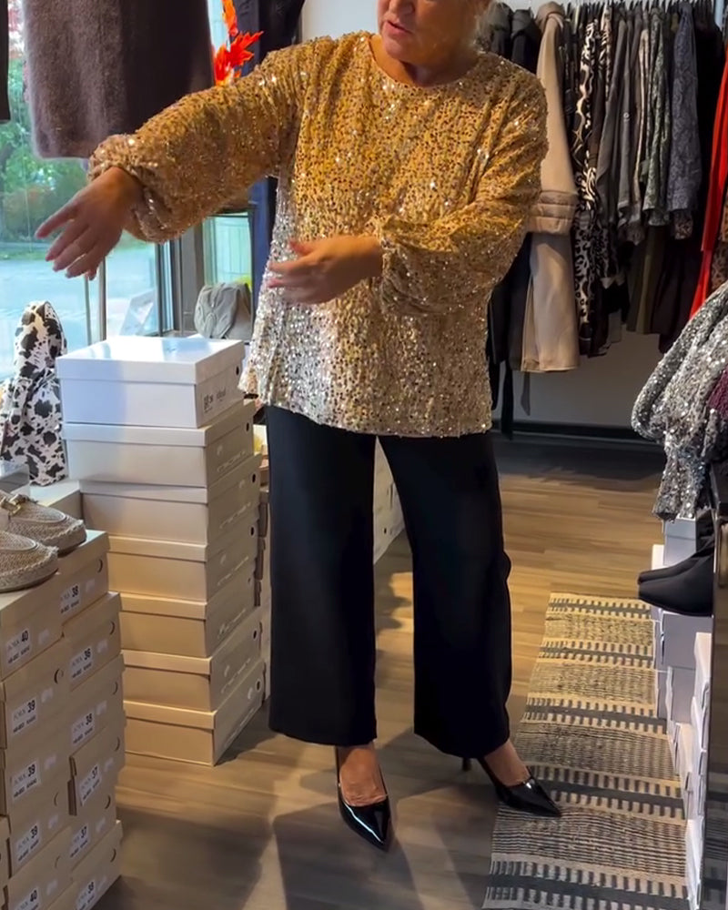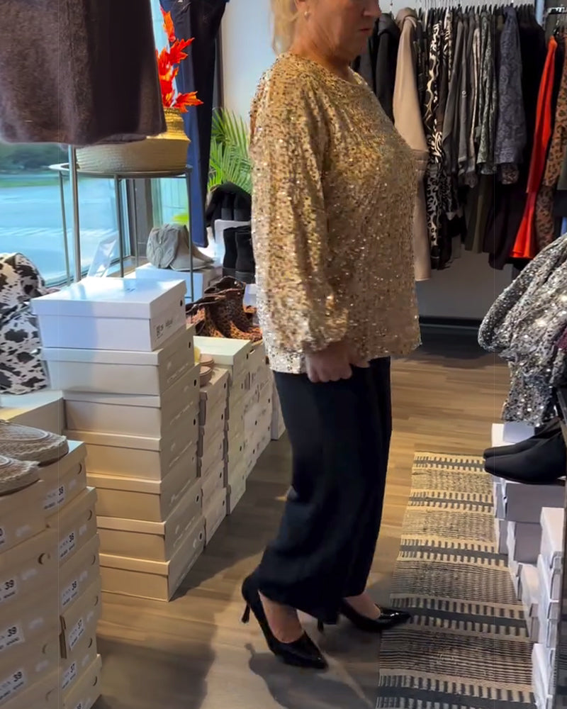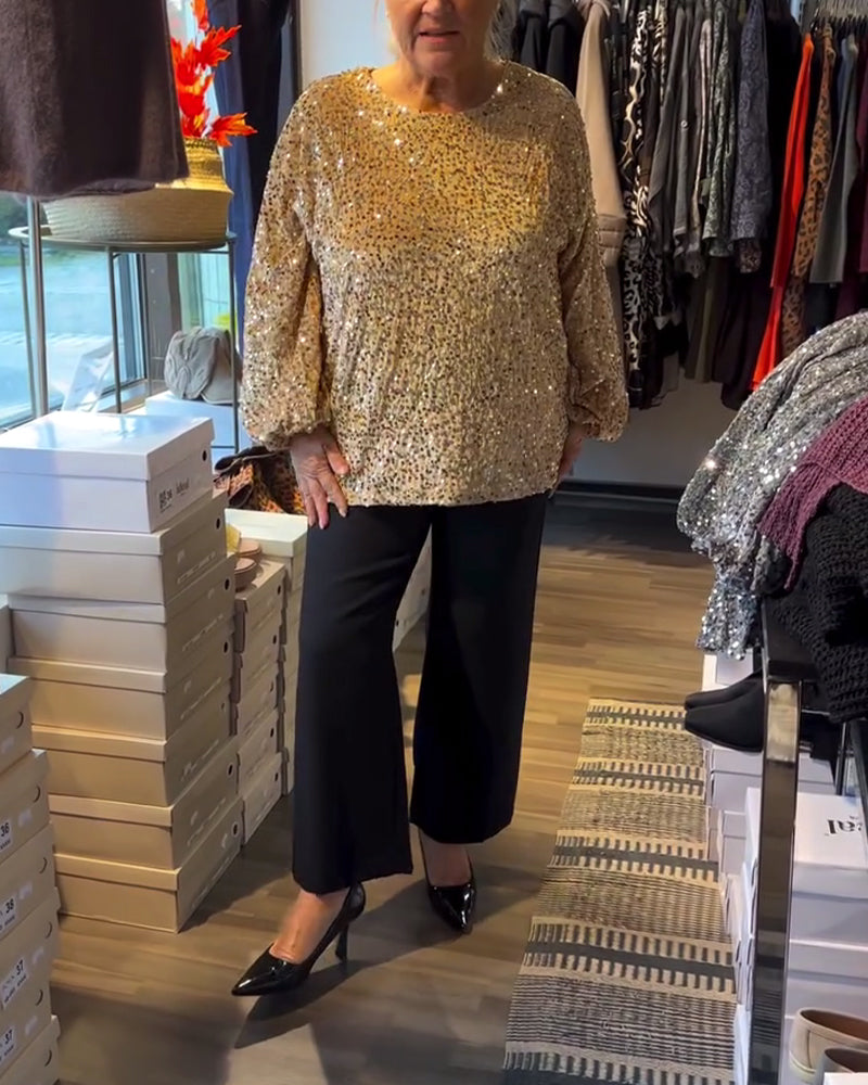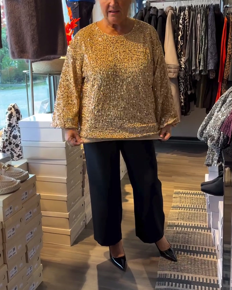Top met ronde hals en ballonmouwen en pailletten