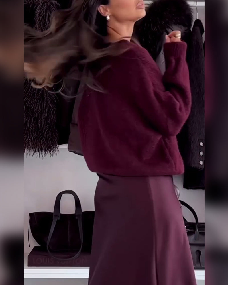 Tweedelige set - effen kleur top en broek met wijde pijpen