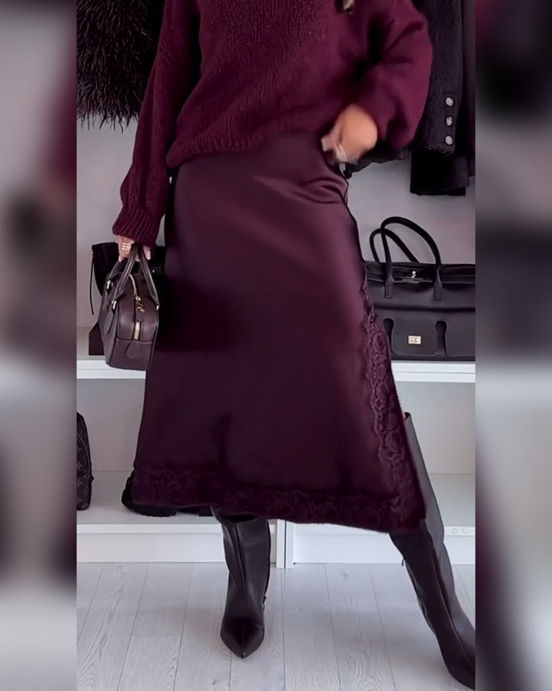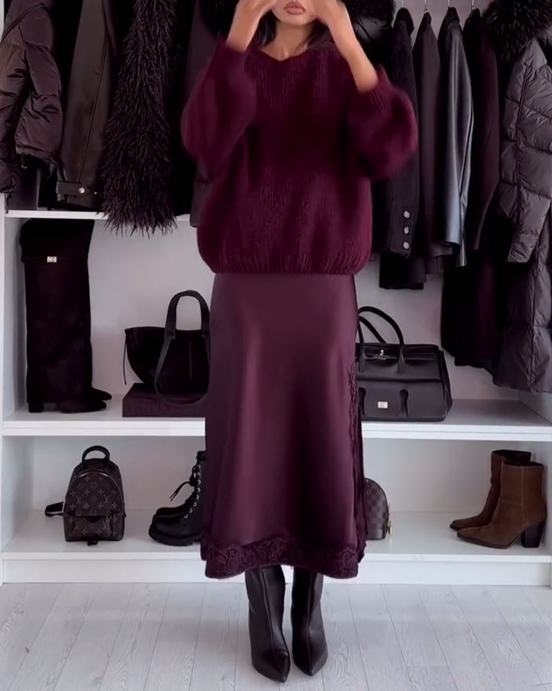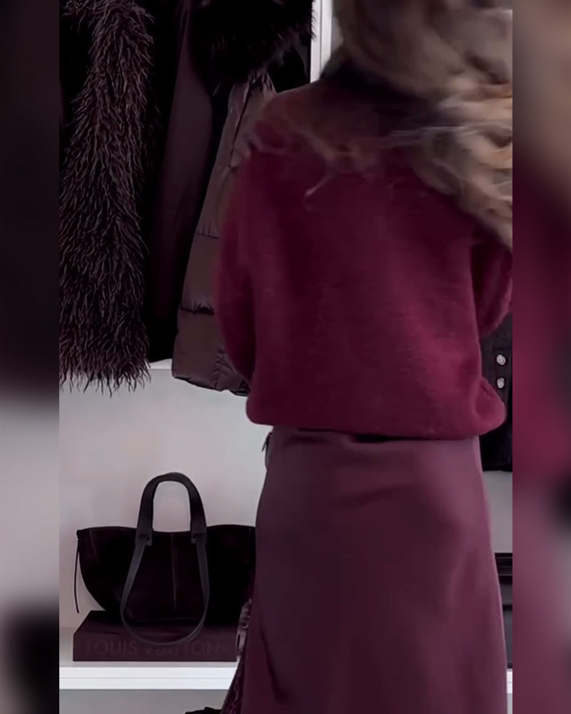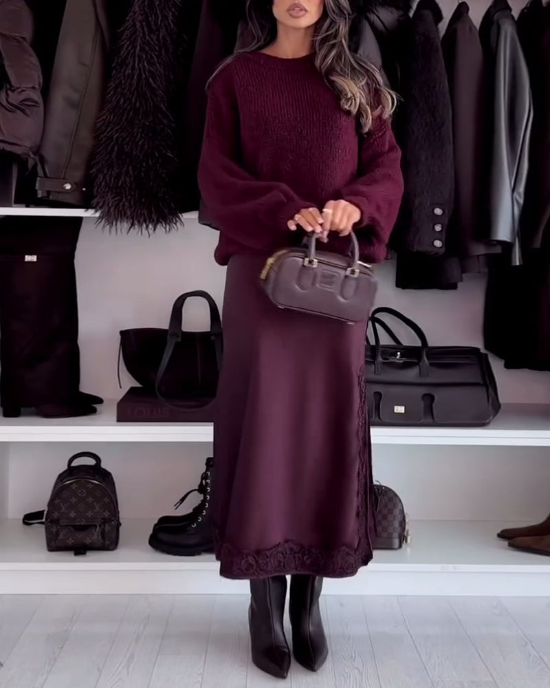 Casual hoge kraag pullover mesh jurk set in effen kleur