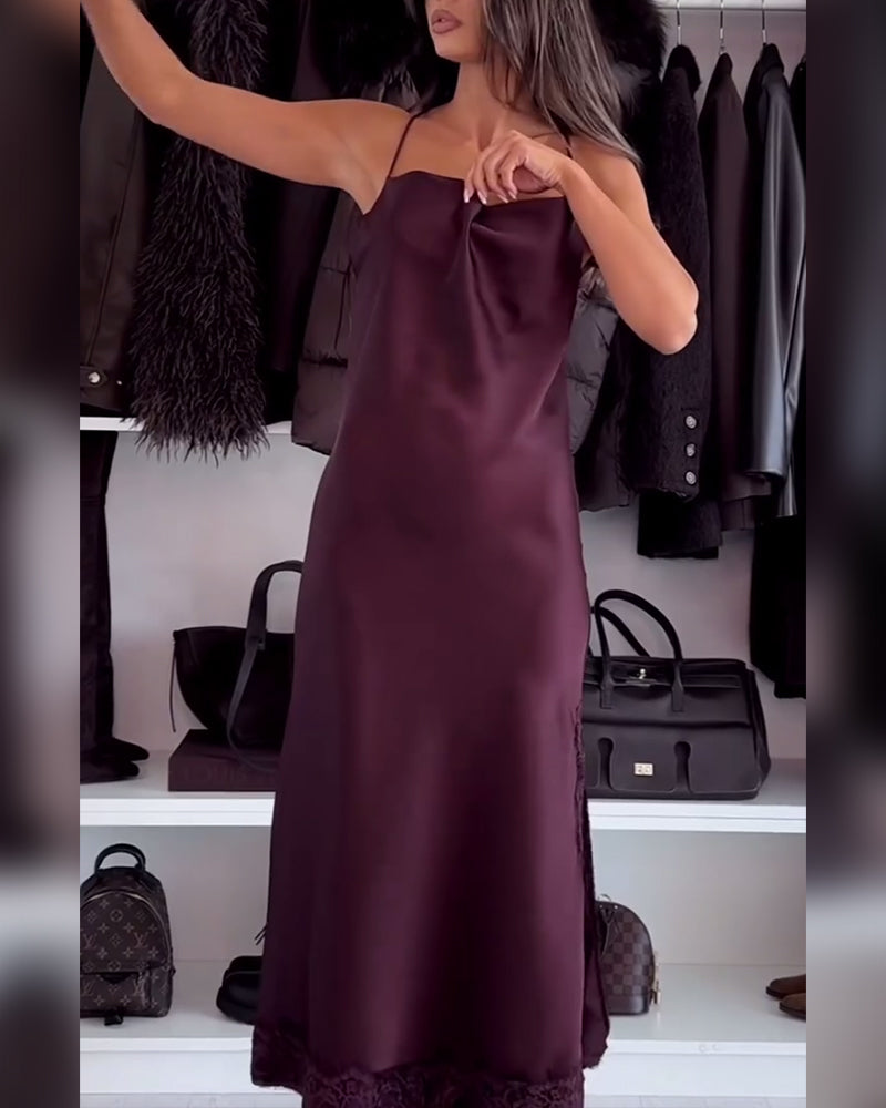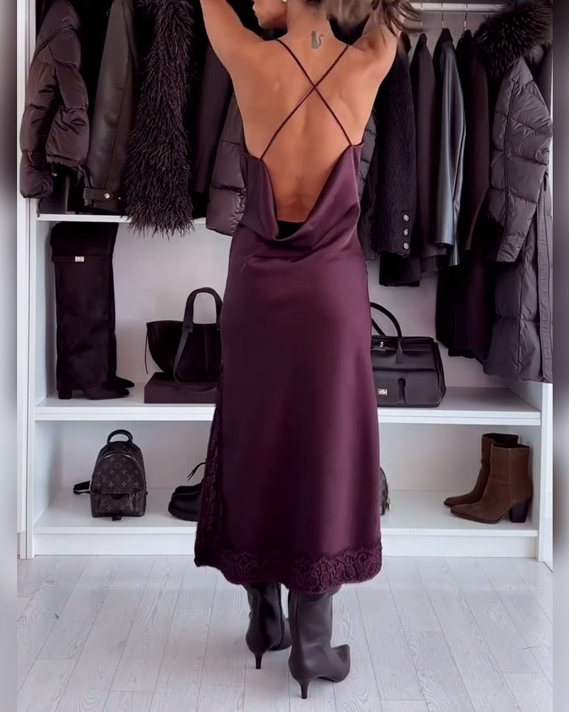 Set Kanten En Meshblouse Met Gedrapeerde Slipjurk