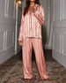 SPECIFICATIES Stijl: Gewoontjes Toptype: Topjes Categorie: Sets Materiaal: katoenblends Patroon type: Gestreept,Kleurblok Hals lijn: Revers Mouw type: Normale mouw Mouw lengte: Lange mouw Broektype: Breed been Broek lengte: Lang type taille: Middelhoge taille Pasvorm: Normaal Seizoen: Lente,Zomer Details: Zak,Toetsen Pakket bestaat uit: 1 x T...