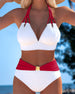 SPECIFICATIES Stijl: Vakantie Materiaal: 15% Spandex,85% Polyester Gelegenheid: Vakantie Hals lijn: Halster Patroon type: Kleurblok Top type: Bikini BH-type: Draadloze BH Bodem type: Hoge snede Pasvorm: mager Details: Rugloos Pakket bestaat uit: 1 x Bikini MAATTABEL (cm) Maat Borst Middel Huep Lagere buste S 88 73 96 73 M 92 77 100 77 ...
